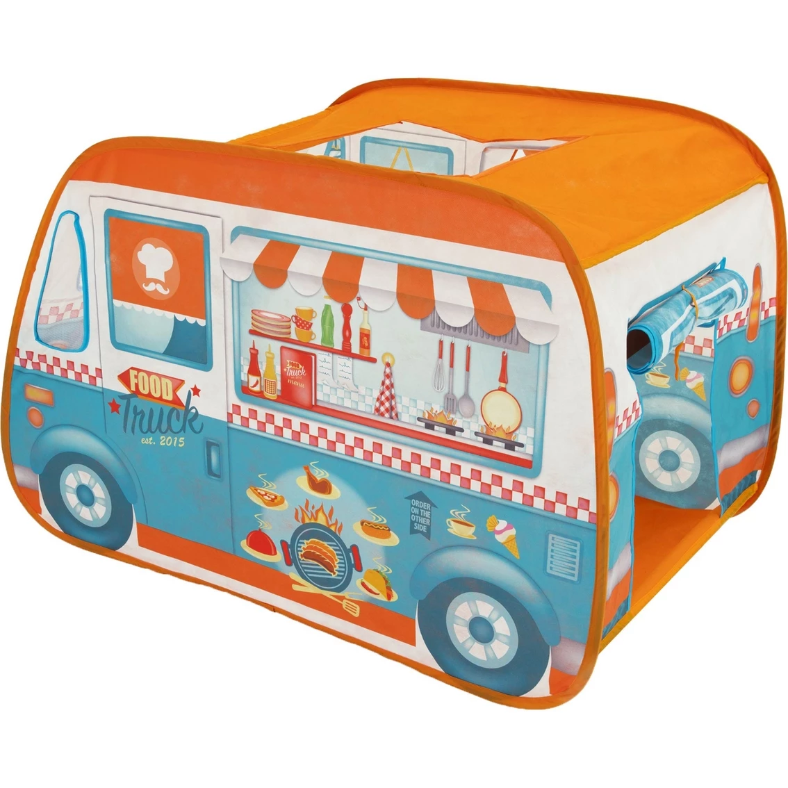 Your kids will love to play with the Fun2Give Pop-it-Up Food Truck. It comes with a unique canopy on the side of the truck and a front window to serve the food. The food truck also has an opening in the roof so kids can stand up straight in the car. The 100% polyester tent is easy to set up and easy to fold away into a compact carry bag. Included are the tent with one door, a canopy, roof opening and front window with netting plus four poles. When assembled the food truck is 47.2 in. x 31.5 in. x 31.5 in. Model: G8716569029544.