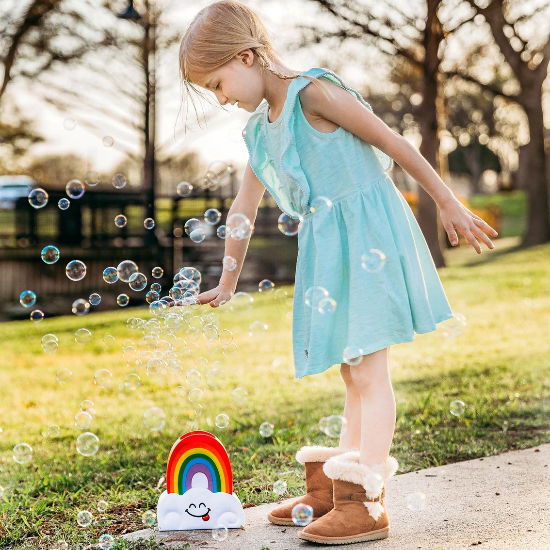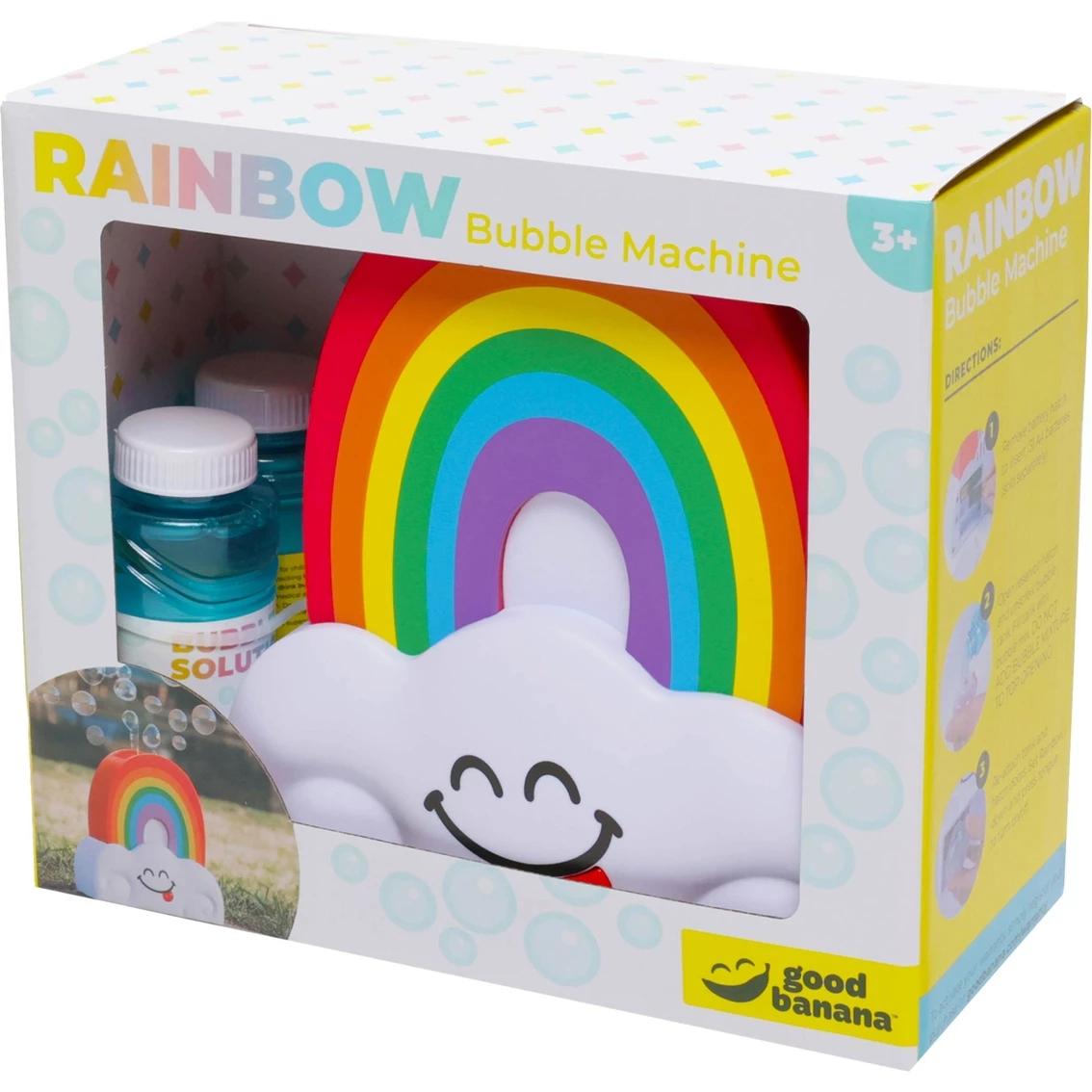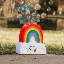 – It even comes with pre-made bubble solution to get going right away. The Rainbow Bubble Machine enables imaginative play that gets kids on their feet