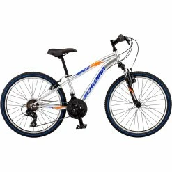 There it sits, waiting for you to get your homework done, mow the lawn, take the dog for a walk… so you can finally get on and ride. Get on the 24 in. Boys Schwinn High Timber and feel the stress of the day instantly melt away with that first, emphatic pedal. This mountain bike is designed to handle dirt and gravel trails, but it still works great for casual rides around the neighborhood or to school. Riding with your friends, check; riding for stress reduction, check; riding for the simple pleasure of feeling the wind tickle your face, check. Say hello to a bike with 21-speed twist shifters and a mountain-style frame with a front suspension fork so you don’t feel all those bumps and thumps when you’re out on the path. All that and even more features that will make you wish you hadn’t waited so long. Go already… feel happy and ride. Like all Schwinn bikes, the High Timber comes with a limited lifetime warranty for as long as you own the bike. Model: S2448C.