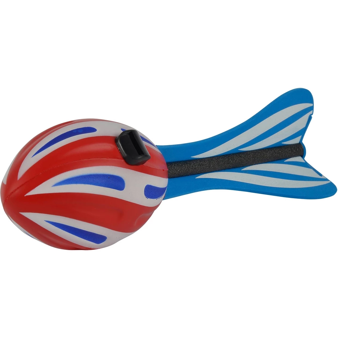Experience great throwing fun with the 11 in. Flying Zone Rotation Rocket from Simba Toys. For pinpoint accuracy, the control springs rotate the rocket around itself while flying. Two integrated pipes emit a howling sound as it flies. The rocket is made of a soft material that can be caught without any worry of injury. Recommended for ages 3 and up. Model: 199553.