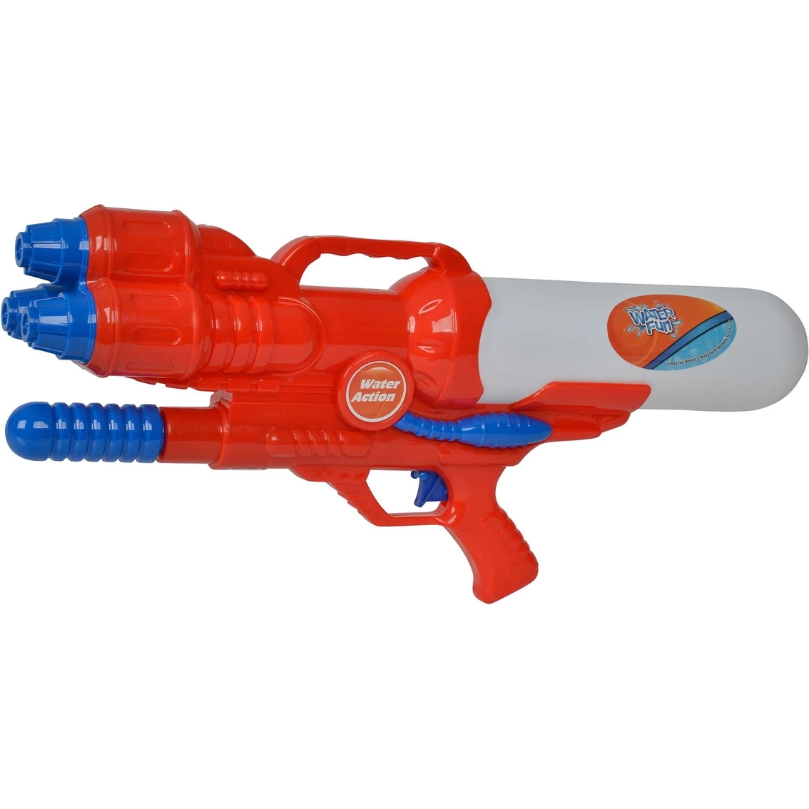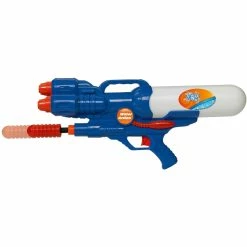 The Water Fun Water Gun XL 460 from Simba Toys makes winning water battles a breeze. You can activate the air pressure mechanism to deploy three jets of water at the same time. The shooting distance is up to an impressive 26 ft. high. The 900ml tank means fewer fill-ups during your water battle. At approximately 18 in. long, this air water gun is perfect for children ages 3 and up. Model: 199555.