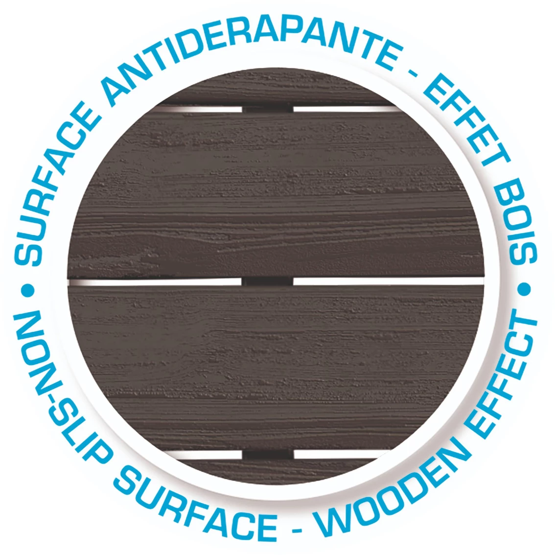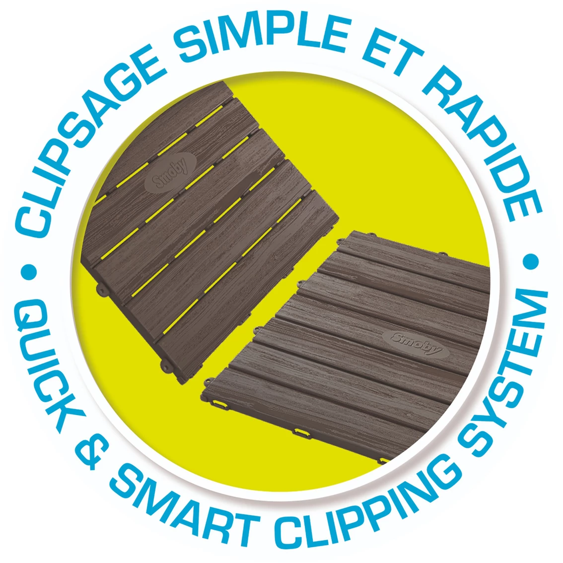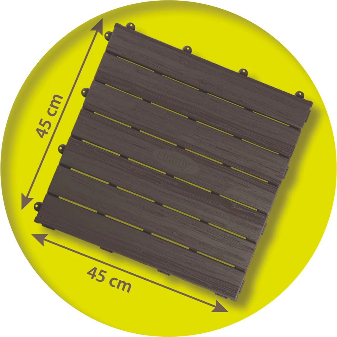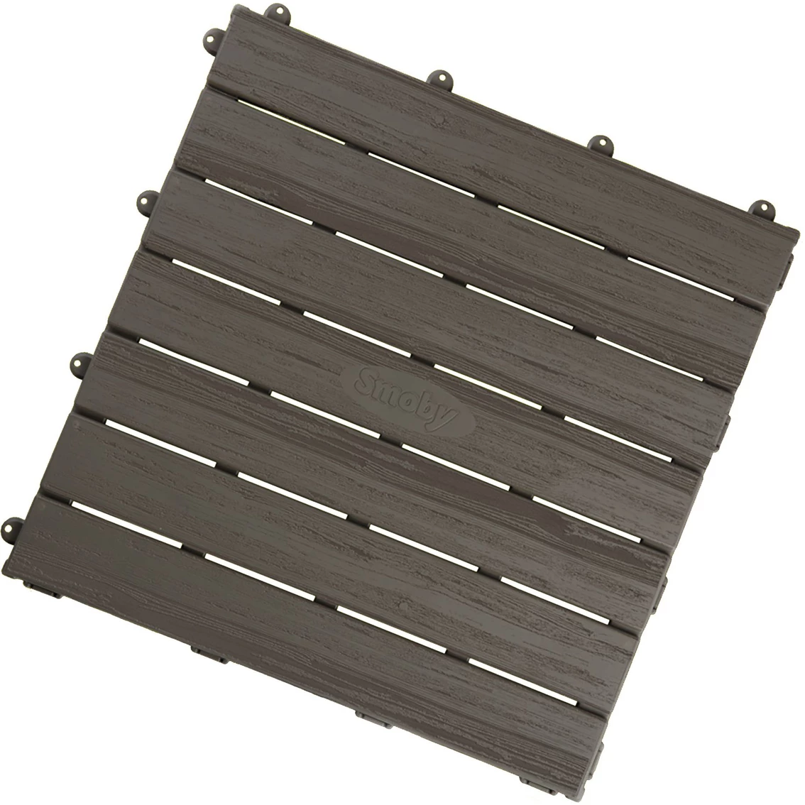 Step up the quality of any playhouse with these six floor tiles from Smoby Toys! With a perfect match and precision spacing between every tile, these plastic deck flooring slabs have an interlocking design base for easy do-it-yourself installation with no tools required. They have a simple, beautiful design that can be used indoors and outdoors. No messy glue or nails needed. Suitable for ages 2 years and up. Model: 203547.