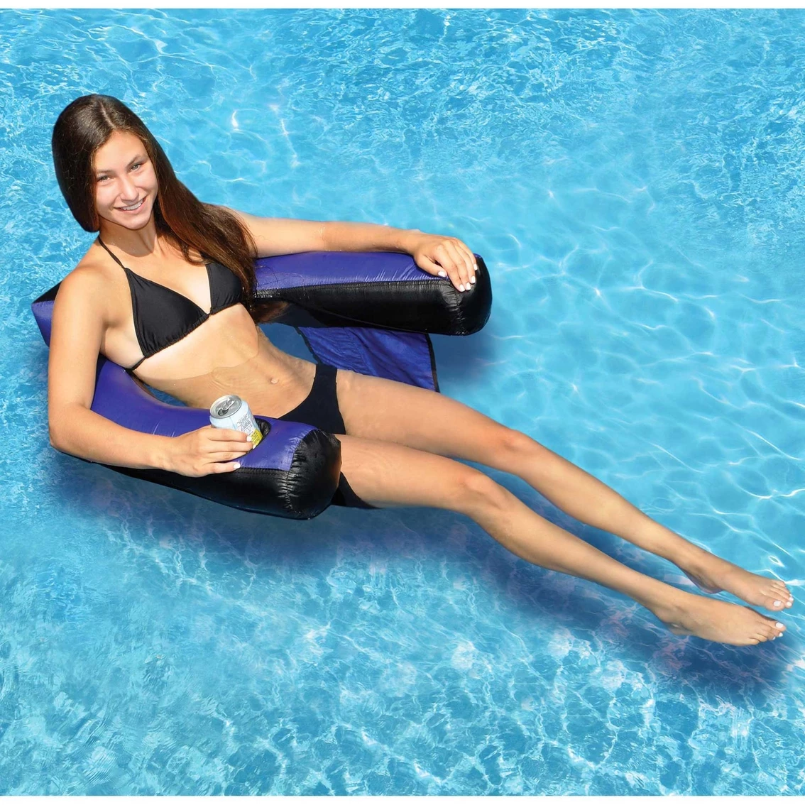 The fabric covered Swimline U-seat is perfect for any pool. With an inflatable head rest and cup holder, this is a great choice for relaxing in the water without being fully immersed. Durability and quality make this an easy way to enjoy the sun and fun of your pool. Suitable for ages 7 years and up. Weight capacity of 225 lb. Use only under competent adult supervision. Model: 202524.