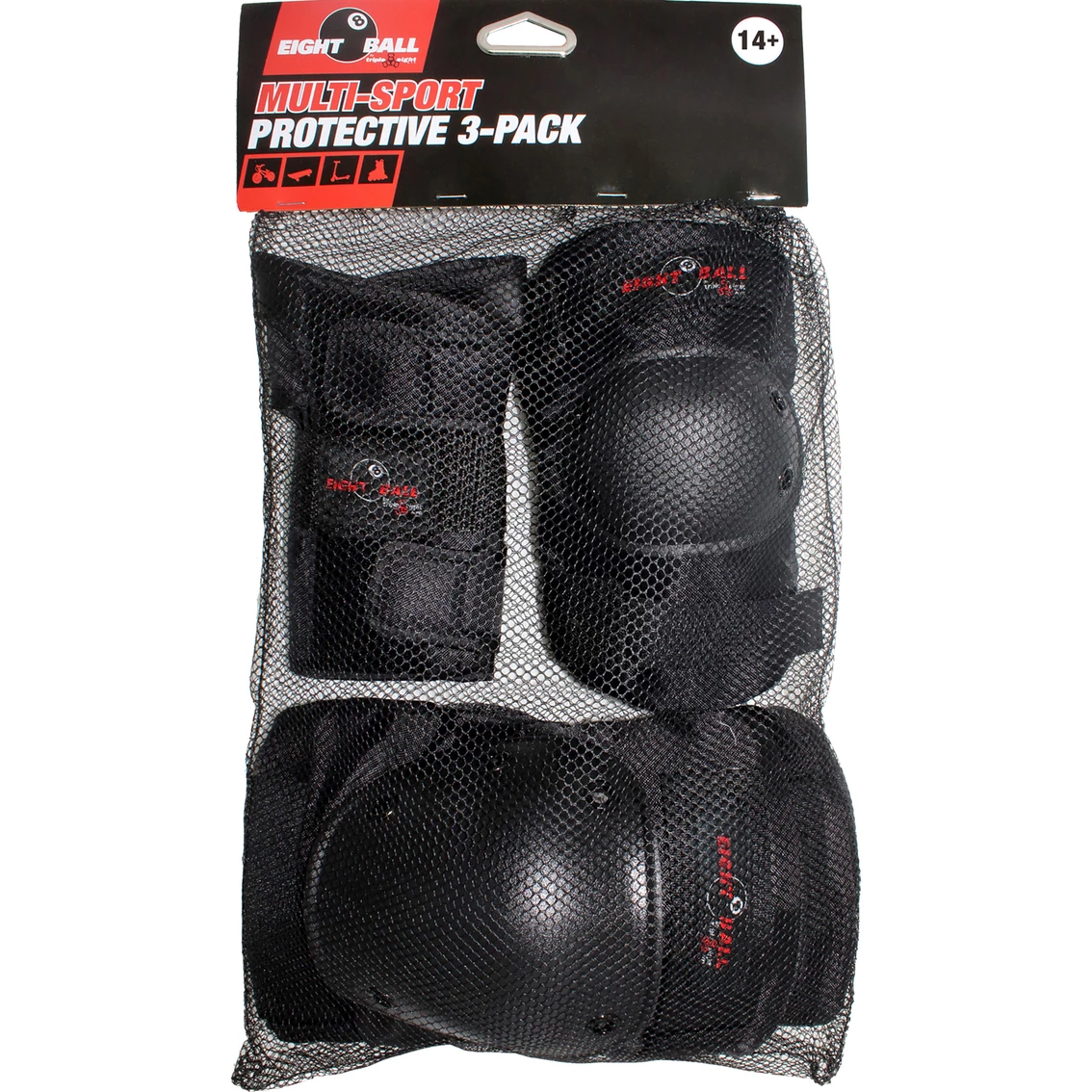 Each pad set includes two wrist guards, two elbow pads, and two knee pads for total multi-sport coverage. Inspired by the ergonomic designs of industry leading action sports brand Triple Eight, the lightweight contoured pads feature shock absorbing EVA foam for cushioning and mobility, and a tough abrasion-resistant nylon body for durability. High-density, impact-resistant caps are securely anchored with reinforced rivets for maximum protection of children’s wrists, elbows, and knees. Wrist guards, elbow pads, and knee pads have adjustable top and bottom straps for a secure fit. Fits ages 14+, Wristguard measure around palm of hand 20.5-23cm (8-9″). Knee and Elbow OSFM,The Eight Ball Multi-Sport Pad Set with Wrist guards, Elbow Pads, and Knee Pads offers maximum protection, comfort, and mobility for biking, skateboarding, rollerblading, roller skating, and scooters.