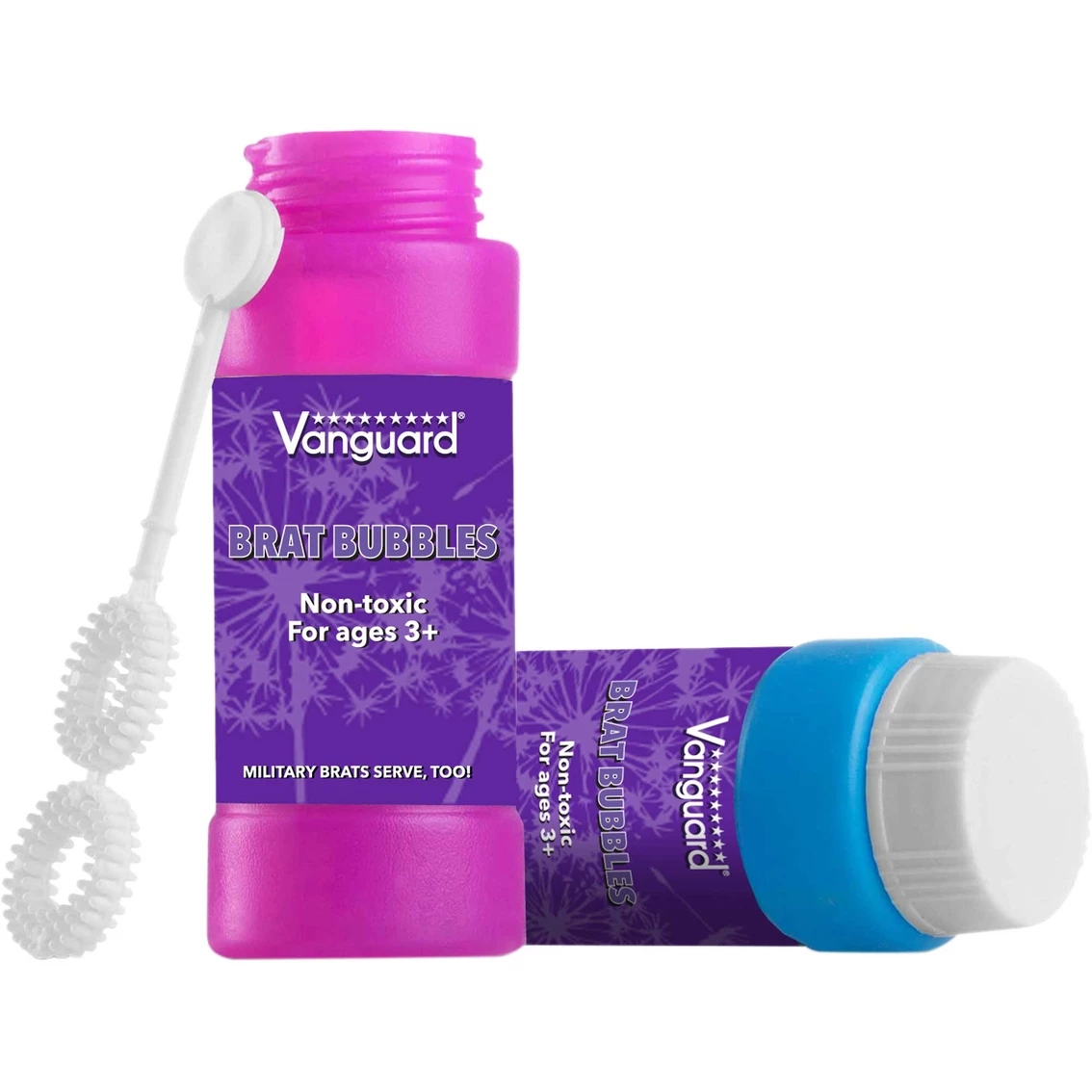 Brat 2022 Bubbles featuring Dandelion on the packaging. Includes 4 ounces of bubble solution. Bottle colors vary and ship at random. The Dandelion is the flower of the Military Child, symbolizing the ability to put down roots and blossom wherever they land. April is the Month of the Military Child, recognizing the contributions and sacrifices of these brave military children. /BRAT/ noun: Describes a child of a parent serving in the US military. Used as a term of endearment and respect throughout the U.S. armed forces.