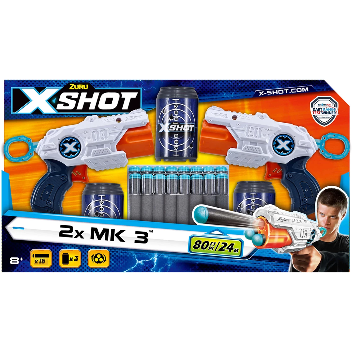 Buy ๐ Zuru Mk X Shot 3 Double Pack With 2 Blasters, 3 Cans And 16 Darts ๐งจ